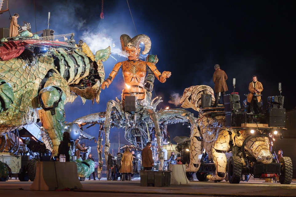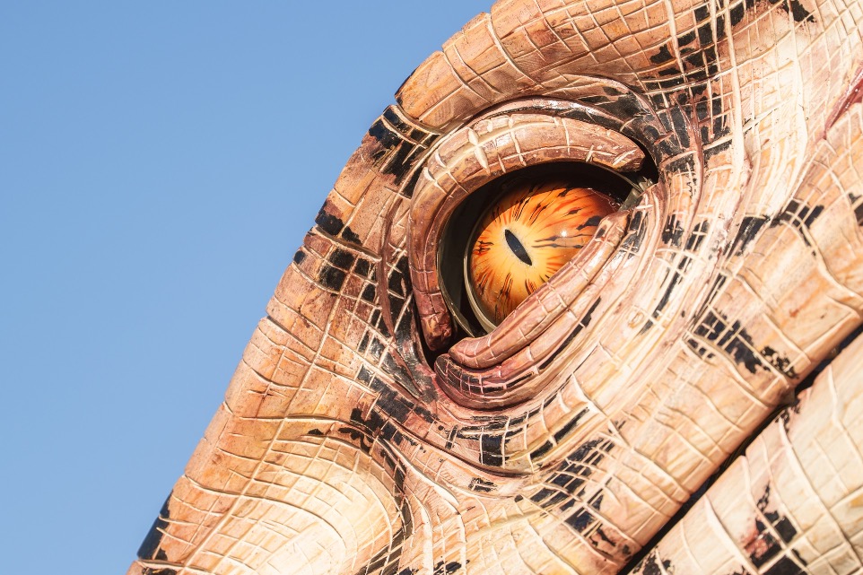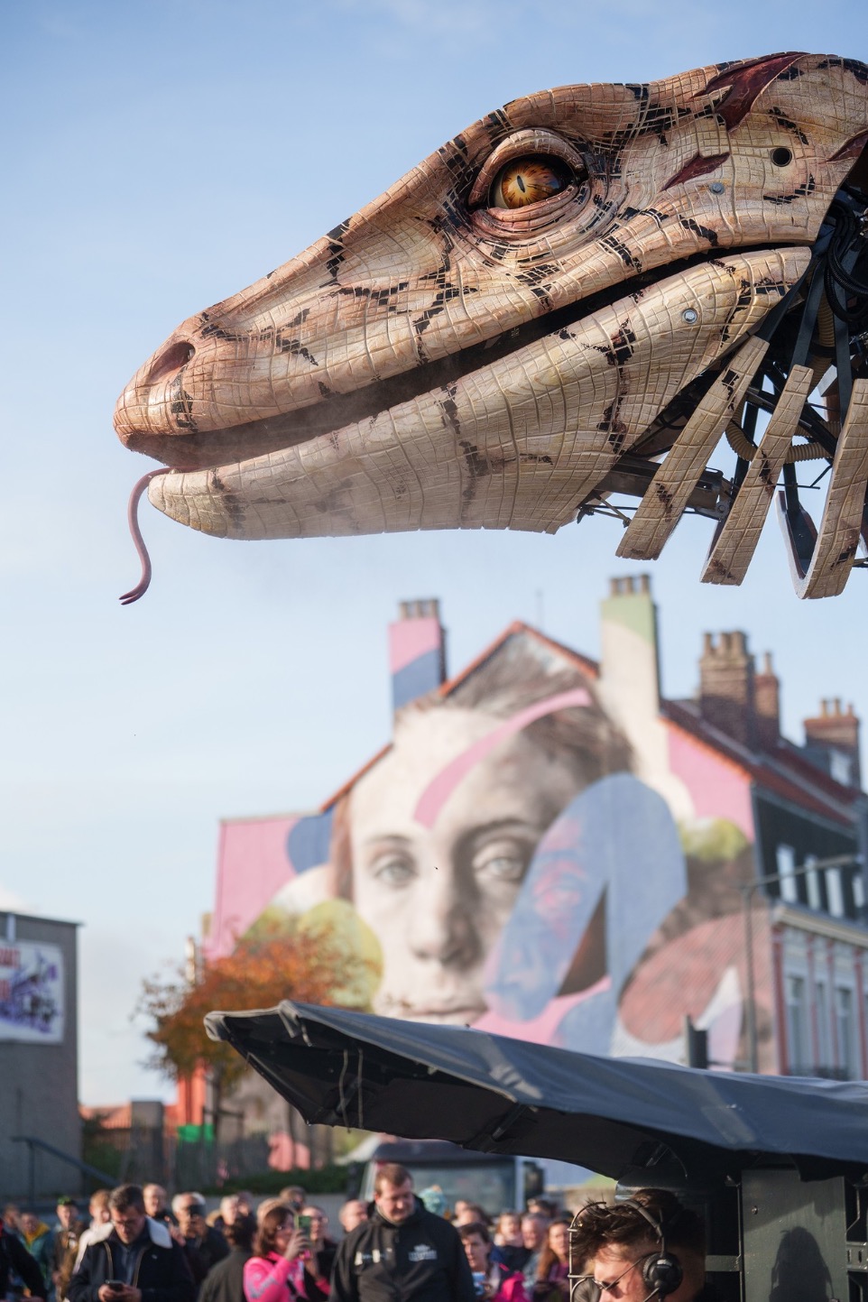 Surgi des profondeurs de la terre, le Dragon vit aujourd'hui à Calais. De l'aube au crépuscule, il émet un signal si puissant qu'il rayonne au-delà des mers. C'est un chant ancien, une exhortation à le rejoindre. sur ses terres du nord. Depuis l'Australie, le plus grand des Varans, a entendu l'appel. Traversant mers et déserts, il se hâte vers Calais. Le Dragon s'est empressé de l'accueillir sur son territoire.