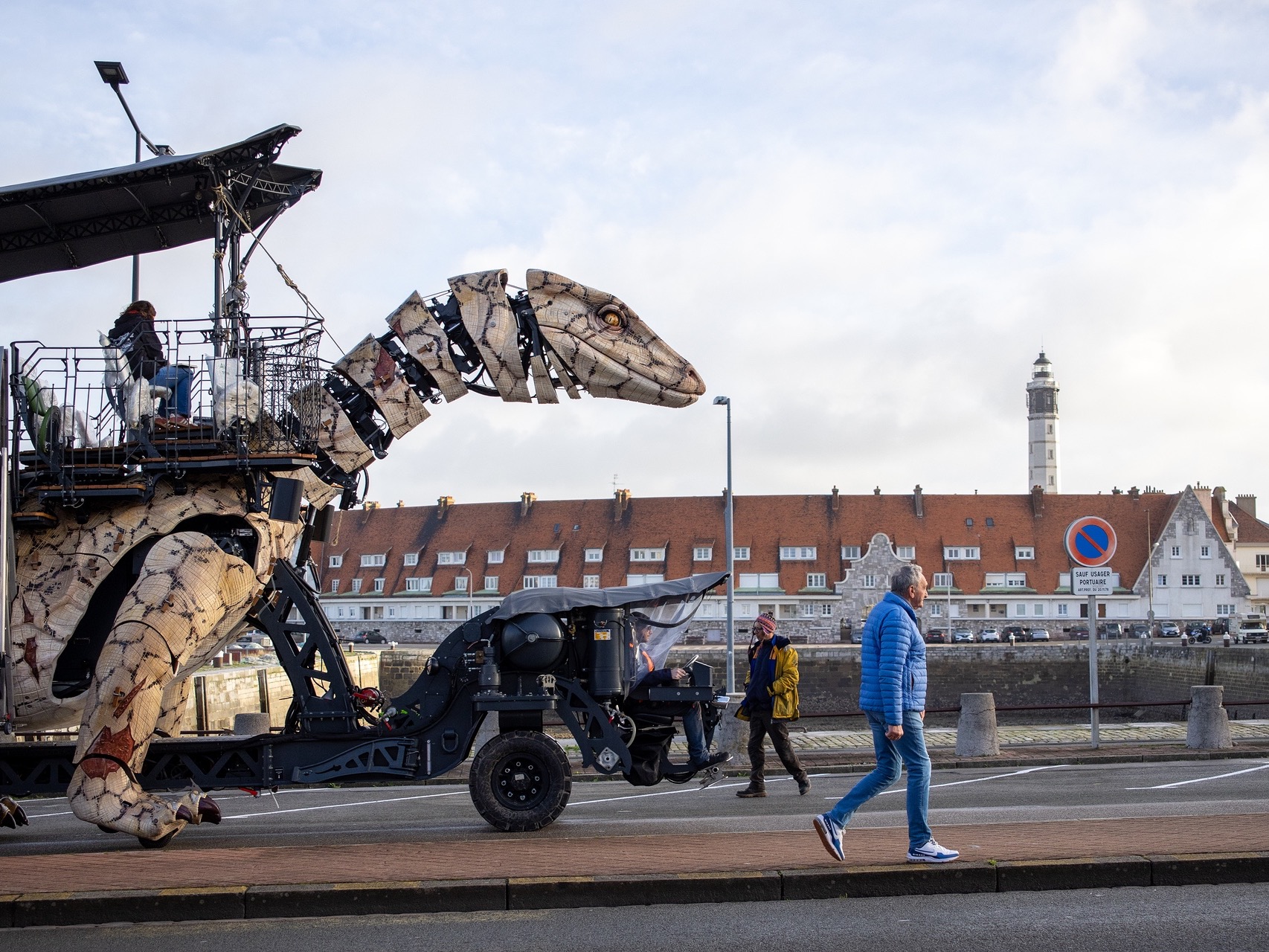 Juché sur le dos de ce géant mécanique, parcourez les abords de la plage, découvrez l’histoire et les paysages emblématiques de Calais face à la mer, et laissez-vous porter par la brise marine.
